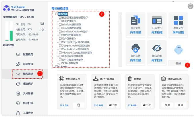 • 点击右侧“扫描”,待扫描完成后,点击出现的“清理”按钮予以清除。