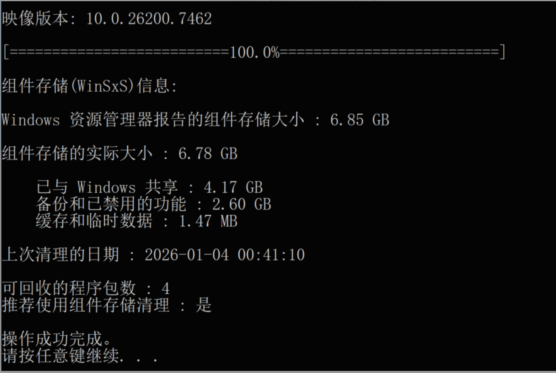 建议尝试“清理 WinSxS”功能,它专门清理系统更新产生的冗余文件。尤其是在使用较久的电脑上,通常能释放出意想不到的可用空间。