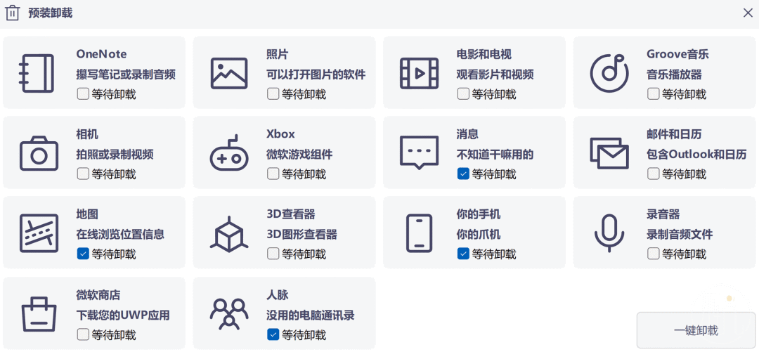 通过“预装应用卸载”,可移除不必要的系统预装软件。以下是我已卸载的部分: